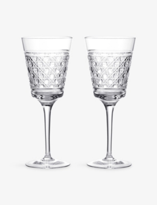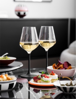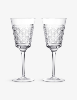 Impress your guests at your next gathering with our striking range of luxury wine glasses. Choose a long-stemmed, unadorned glass for a classic shape and style, or opt for lace designs or wedge-cut embellishments to add a hint of personality. Depart from the norm with a stemless option, or pick one accented with subtle colour. A table laid for outdoor drinks will look especially inviting accessorised with crystal-glass wine goblets - iridescent pearl glassware can add a touch of shimmer to a dinner party tablescape, too.