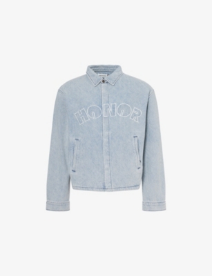 Aged Appliquéd-Logo Faux-Suede Jacket