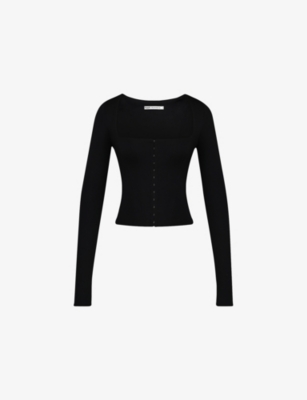 Square-Neck Long-Sleeved Stretch-Woven Top