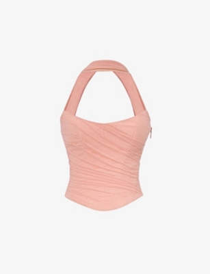 Vienne Plunge-Neck Velvet-Jersey Corset Top