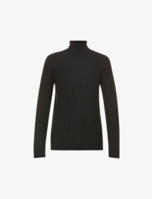 Patterned turtleneck wool and cotton-blend jumper