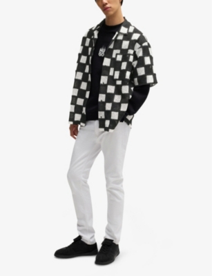 Checkerboard Short-Sleeved Stretch-Woven Shirt
