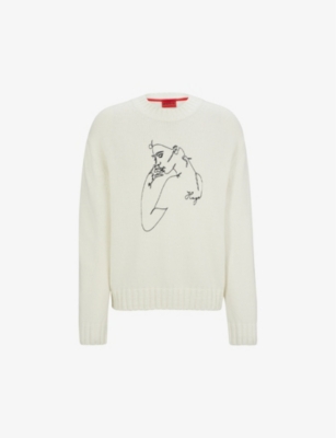 Face-motif relaxed-fit wool-blend jumper