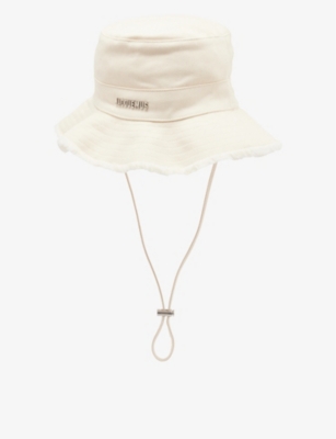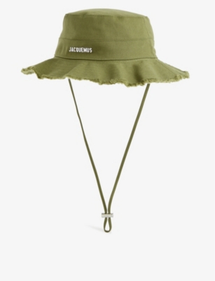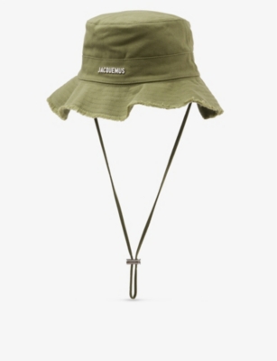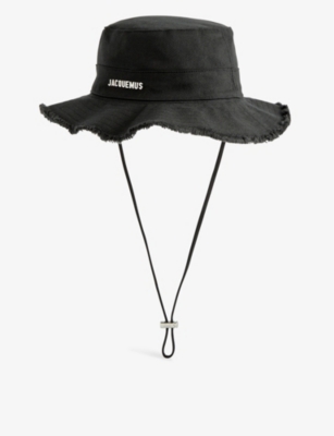 When the blistering sun is shining, make sure to stay cool in a JACQUEMUS bucket hat. The selection includes a variety of silhouettes to suit different occasions, from hats with wide and structured brims to ones with frayed and floppy edges for a more laid-back look. With drawstring ties and adjustable chin straps, one size is sure to fit all. Expect bold prints and vibrant colour palettes, from gutsy florals to sky blue hues, daisy yellow to sun-kissed orange. With a JACQUEMUS men's hat, you'll be capturing the essence of a sunny day in rural France.