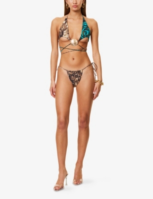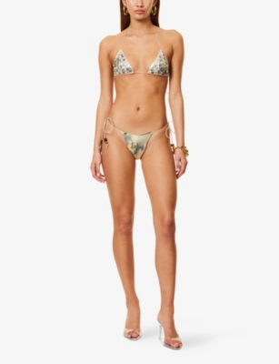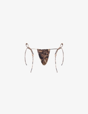 Tie-Side Graphic-Pattern Stretch-Woven Bikini Bottoms