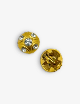 Pre-loved gold-plated metal and crystal clip-on earrings- Price:$295.00