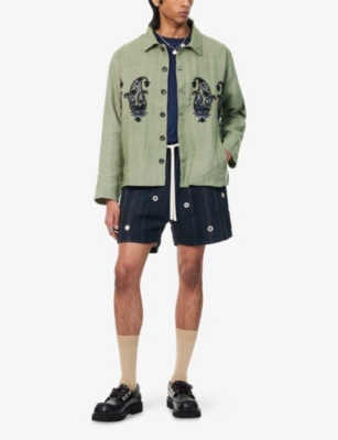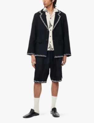 Embroidered-Mirrors Relaxed-Fit Cotton-Linen Jacket