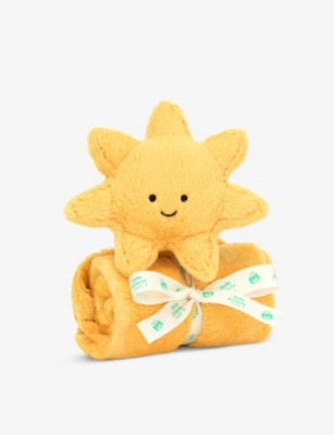 Whether you're looking for a cuddly friend to help them drift off to the land of Nod, or a fun book to share, our baby gifts can be relied on for quality and durability. We've selected squirty bathtime toys and pop-up play tents to stimulate curious and lively toddlers. Meanwhile, cotton baby blankets and silky soft soothers are on hand for those quieter moments. Can't decide what to pick? Our baby gift sets do the legwork for you with a selection of hand-chosen necessities for the family, like babygrows, storybooks and teething rings. Treats-filled baby hampers are presented in one of our eye-catching yellow boxes.