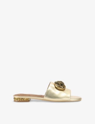 Kensington eagle-embellished rainbow metallic-leather mules- Discount price:$83.00