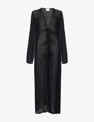 LE KASHA: Dahmit Sheer Linen Maxi DressLE KASHA: Dahmit Sheer Linen Maxi Dress