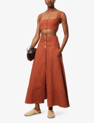 LE KASHA: Hadera Pleated Linen Midi SkirtLE KASHA: Hadera Pleated Linen Midi Skirt