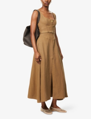 LE KASHA: Assiout A-Line Linen Midi DressLE KASHA: Assiout A-Line Linen Midi Dress