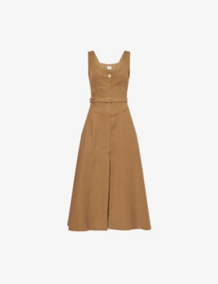 LE KASHA: Subu Belted Linen Midi DressLE KASHA: Subu Belted Linen Midi Dress