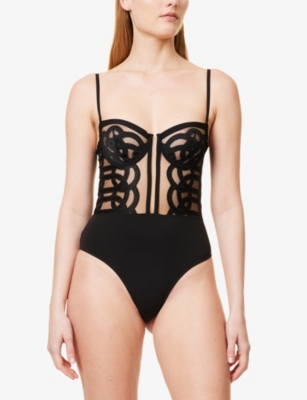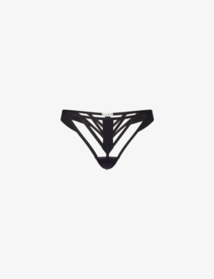 Hidden Halo Embroidered Stretch-Tulle Tanga Briefs