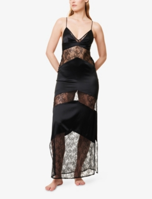 Dark Sully Floral Lace and Silk Maxi Slip Dress