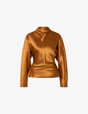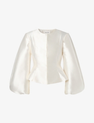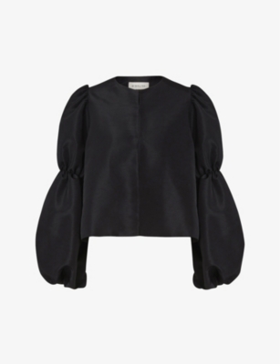 Cleo balloon-sleeve satin blouse