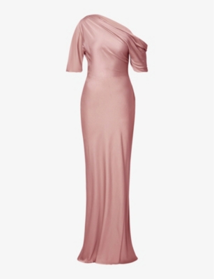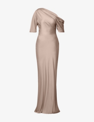 Marisa asymmetric-neck draped satin maxi dress
