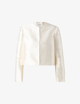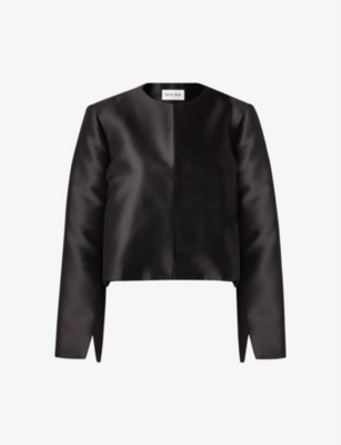 Ruthie round-neck long-sleeve cropped satin blouse