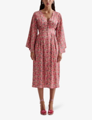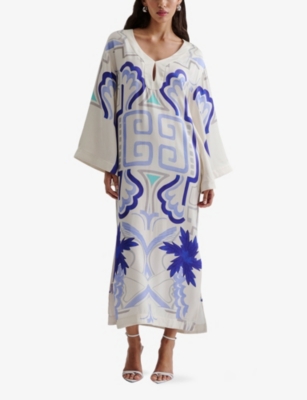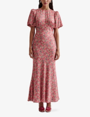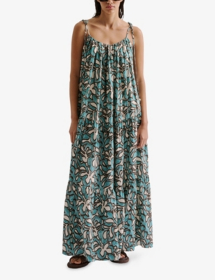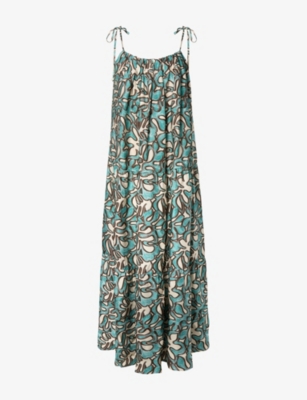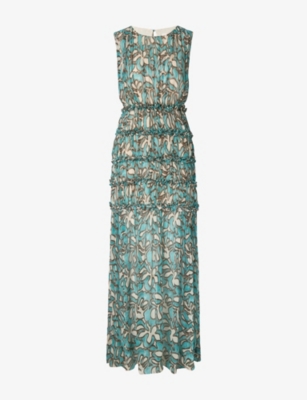 Mare Ruched-Neck Graphic-Print Woven Maxi Dress