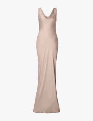 Leah Cowl-Neck Satin Maxi Dress