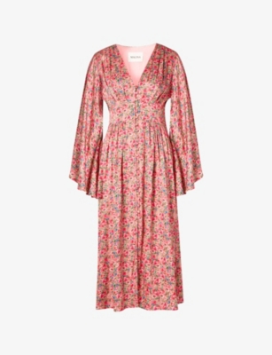 Manon Graphic-Print Wide-Sleeve Satin Maxi Dress