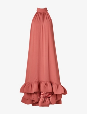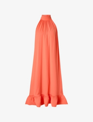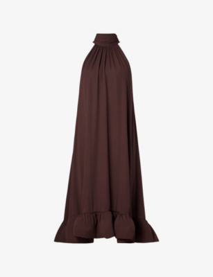 Sabrina Halterneck Ruffled-Hem Woven Midi Dress