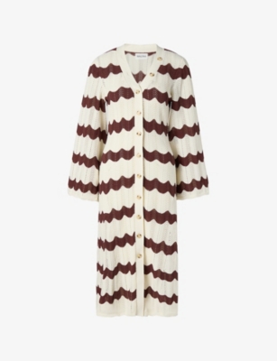 Isobel V-Neck Wide-Sleeve Striped Knitted Midi Dress