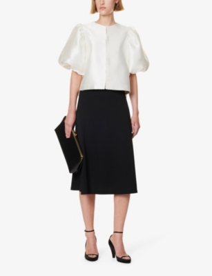 Cleo Pouf Balloon-Sleeve Satin Blouse