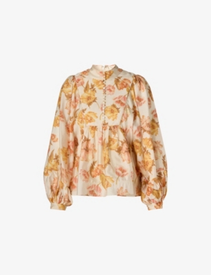 Lune High-Neck Ruffle-Hem Woven Blouse