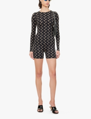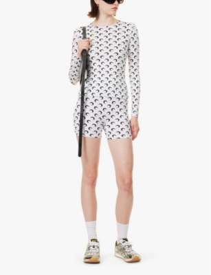 Our selection is contemporary with subtle sportswear touches, and includes a lineup of year-round wardrobe pieces in skin-tight and relaxed silhouettes. You'll see the signature crescent moon print adorning many of the garments - an instantly-recognisable motif, which represents freedom and hybridity" according to Marine herself. Crafted from planet-friendly fabrics, our Marine Serre bodysuits are slim-fitting to highlight your natural form. Leggings, shorts and tops can be found in recycled stretch fabrics, using regenerated fibres, in the now iconic moon print as well as colour-blocked designs and abstract animal patterns.