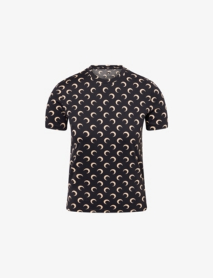 Moon-Print Short-Sleeves Stretch-Woven Top