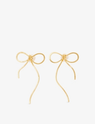 Bow Brass and Pearl Stud Earrings