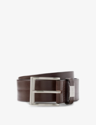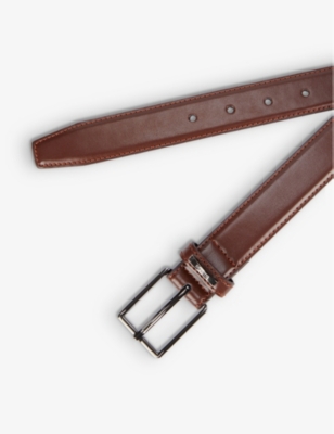 There's a vibrant colour palette to explore across our men's smart belt range, too. Flashes of bright scarlet sit alongside clean white hues. Brown shades appear throughout, from rich chocolate to sandy camel. For something slightly more unusual, why not choose a mossy green or slate grey belt? Or, opt for a subtle pop of colour by selecting a belt finished with contrasting stitching or keeper trims. Rounded and three-pin roller buckles bring something a little different to a formal ensemble, while oversized moniker and branded buckles are designed to dazzle.