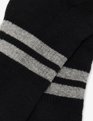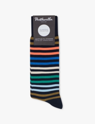 Varying from ankle to crew lengths, the breathable socks in our selection are often topped with ribbed cuffs to keep them in place. Ankle socks are ideal for exercising - they're lightweight with padding to support your feet while you keep fit. For dressier occasions, turn to men's patterned dress socks made from luxury silk blends. When the weather gets cooler, wool blends give that extra touch of warmth. Stretch-cotton styles are made for everyday comfort, whether you're out with friends or spending the day in the office.Â