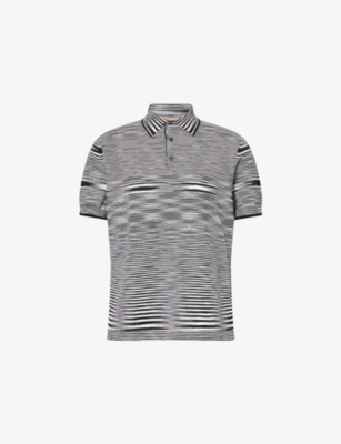 Chevron Knitted-Panel Cotton-Jersey Polo Shirt