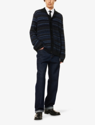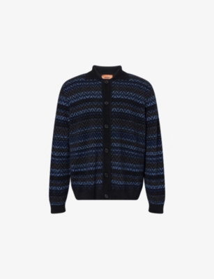 Zig-Zag Pattern Long-Sleeve Cotton And Wool Polo Shirt