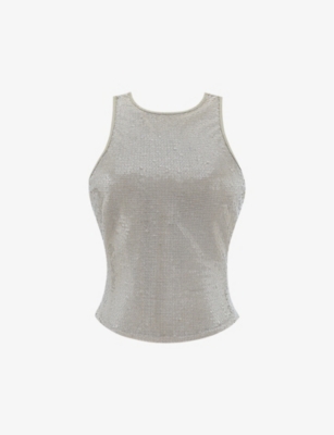 Crystallised panelled plunge-neckline stretch-mesh bodysuit