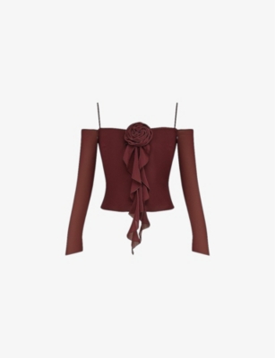 Delight slim-fit long-sleeve shirred stretch-woven cropped top