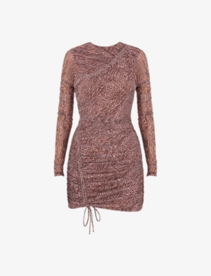 Here Kitty graphic-print ruched stretch-mesh mini dress