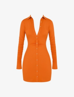 Marquis button-down long-sleeve stretch-jersey mini dress