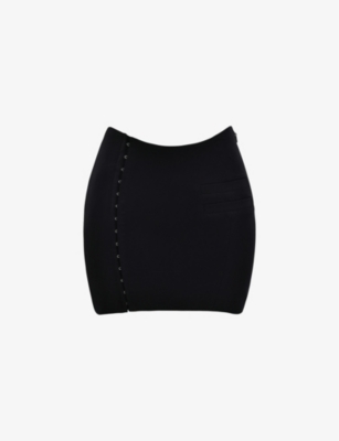 Faux Fur-Hem Stretch-Crepe Mini Skirt