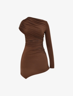 Feline This graphic-print one-shoulder stretch-mesh mini dress