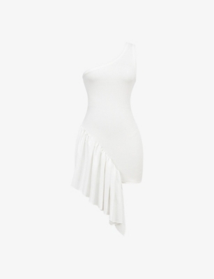 Ruffled asymmetric-hem stretch-jersey mini dress