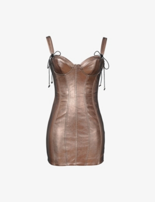Lace-Up Slim-Fit Faux-Leather Mini Dress