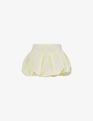 Ruffle-trim high-rise asymmetric stretch-mesh mini skirt