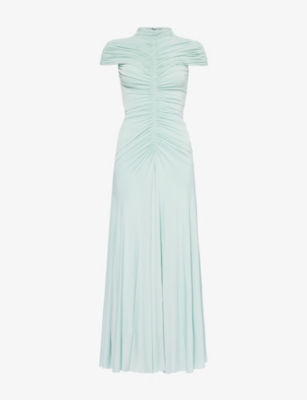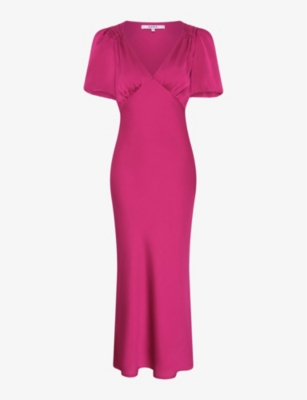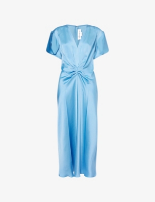 V-Neck Asymmetric-Hem Stretch-Woven Midi Dress
