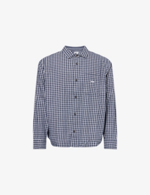Check-Pattern Logo-Embroidered Cotton Shirt