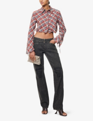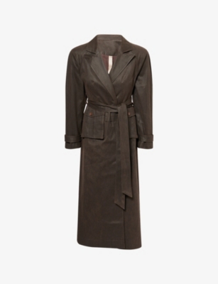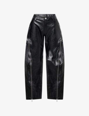 Wide-Leg Zip-Trim Patent Faux Leather Trousers