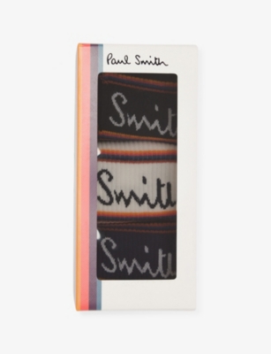 Our Paul Smith men's clothing collection encapsulates the English brand's creativity. Discover slim-fitting suits that pair well with the label's distinctive shirts. Signature graphics like florals and stripes enliven relaxed tops and knits. For finishing flourishes, explore artistic socks and underwear. Pick from casualwear to relax in and special occasionwear to meet formal dress codes.Â