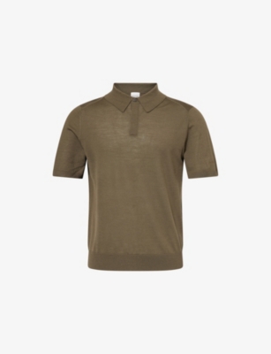 Embroidered-Logo Fine-Knit Wool Polo Shirt
